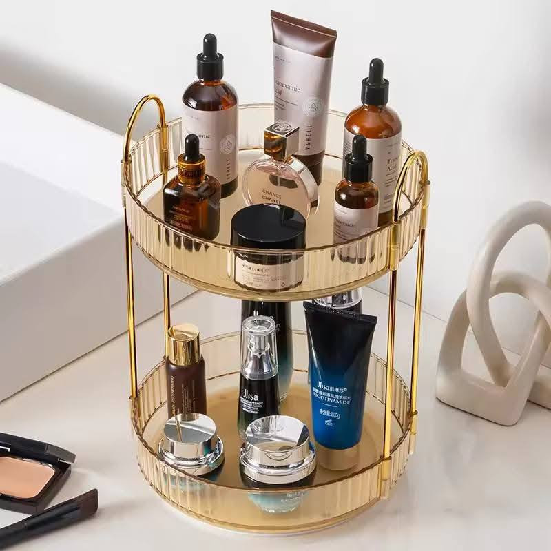 2 Layers Light Luxury Makeup OrganizerPrice: 1850 TkMaterial: Pet + Metal360° movementSuperior Material & Simple InstallationMultipurpose UseDimensions: 32 by 23 cm