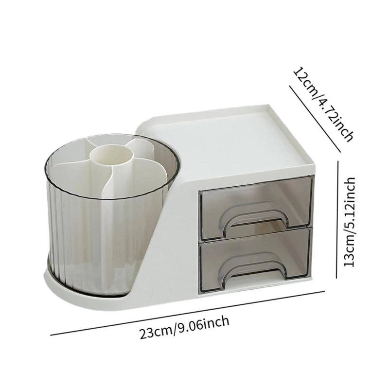 Enhance your desk organization with our versatile Rotating Pen Holder. This innovative desk accessory combines functionality with style, featuring a waterproof, rotatable design that ample compartmentalized storage. Ideal for organizing pens, pencils, makeup brushes, and even glasses, it boasts a large capacity to keep your neatly arranged. Perfect for home offices, classrooms, or makeup stations, this desk organizer ensures easy access to your daily while adding a touch of efficiency to any space.