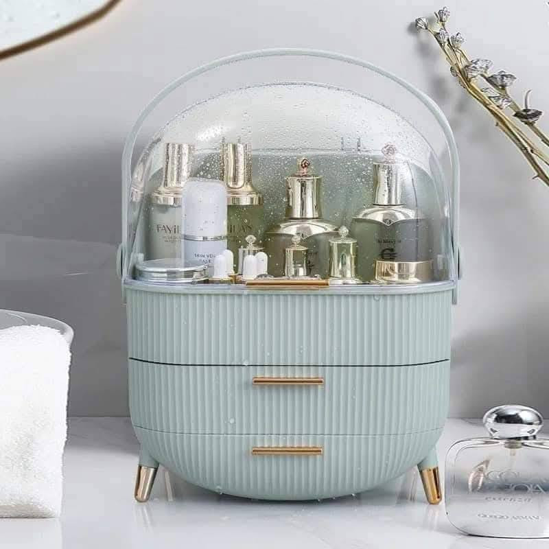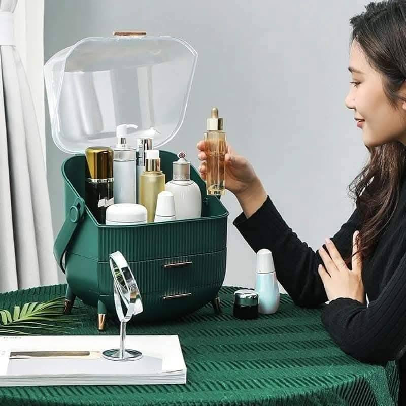 Dust-Proof Large Capacity Makeup Storage Box With Handle
