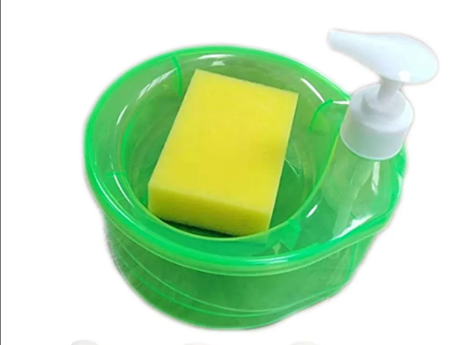 একই সাথে স্পঞ্জ হোল্ডার এবং সোপ ডিসপেনসার – একে চাপ দিন, স্পঞ্জে সাবান, আর ধোয়া শুরু করুন