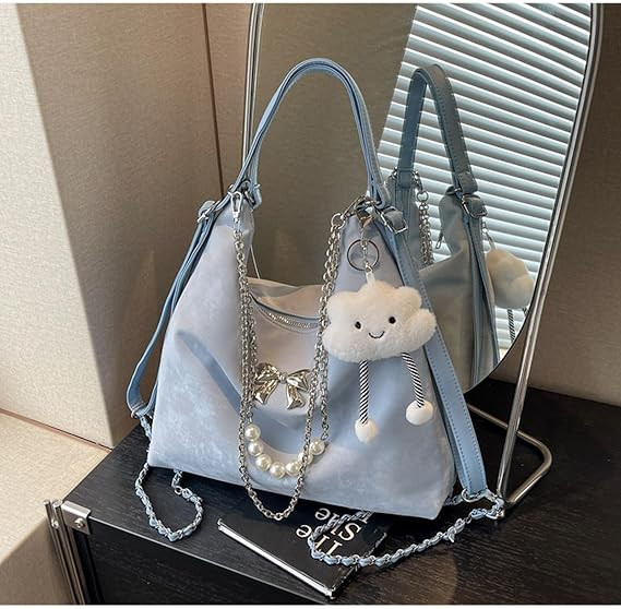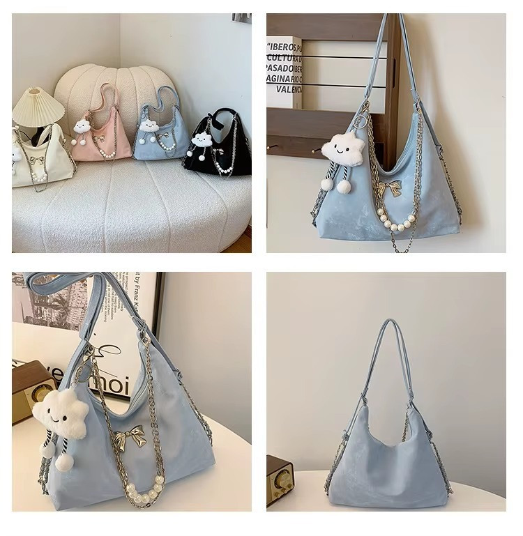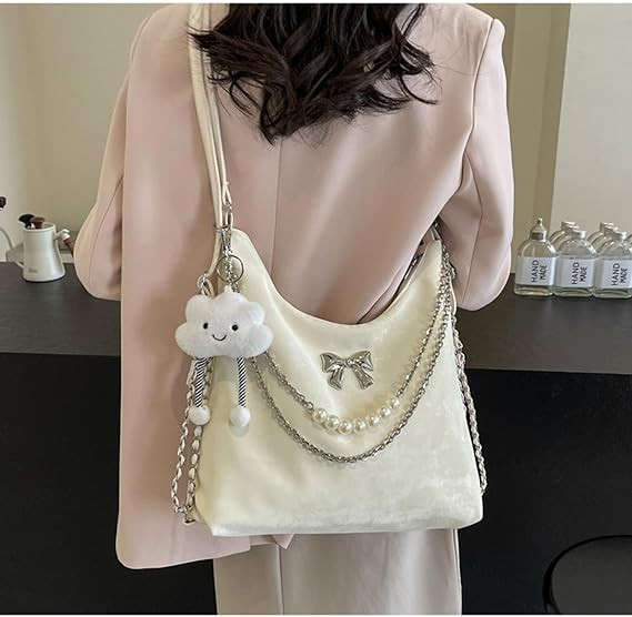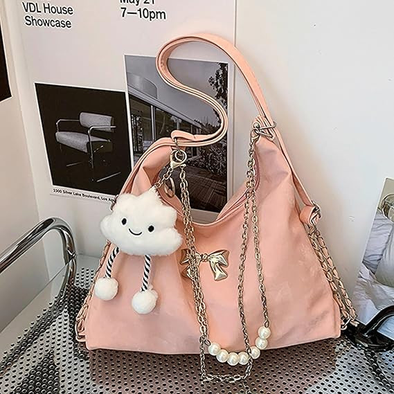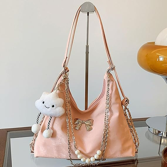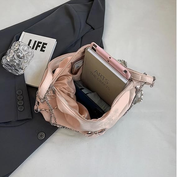 Soft Leather Korean Style Pearl Chain Shoulder BagOffer Price: 950 TakaMaterial: PU LatherSize: Height 24cm/9.4in, Length 32cm/12.6in Width 10cm/4 inch