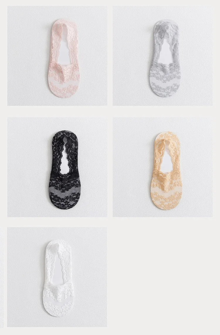 • Features: The socks are typically made of a stretchy, breathable lace fabric with a non-slip silicone grip at the heel to prevent them from slipping down. They are designed to be worn with low-cut shoes like loafers or sneakers and remain hidden.