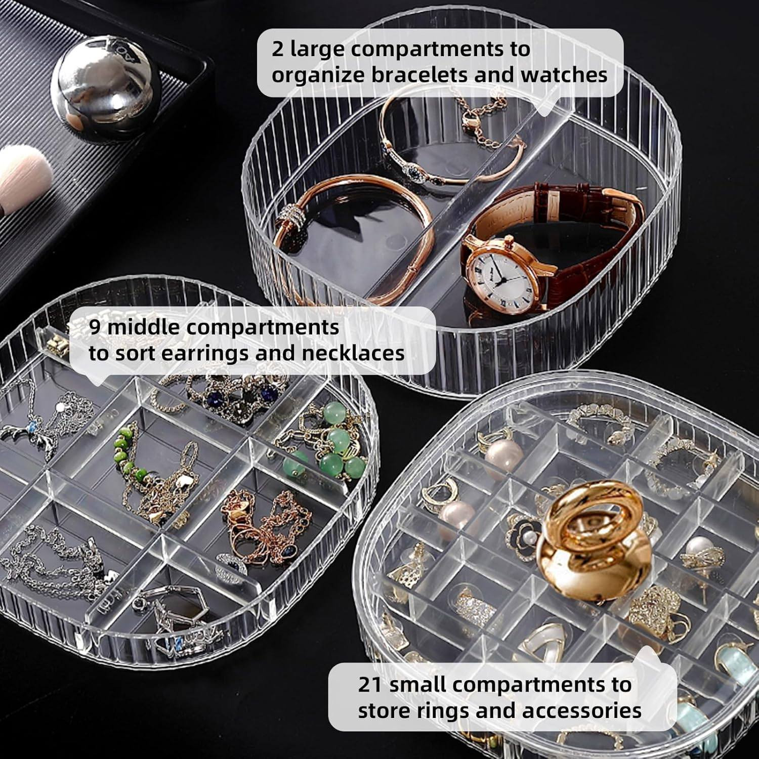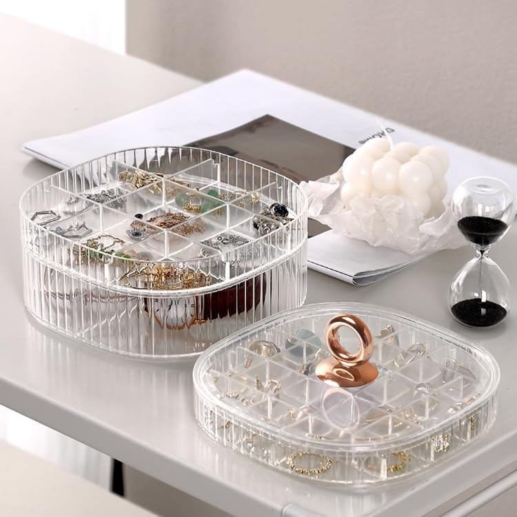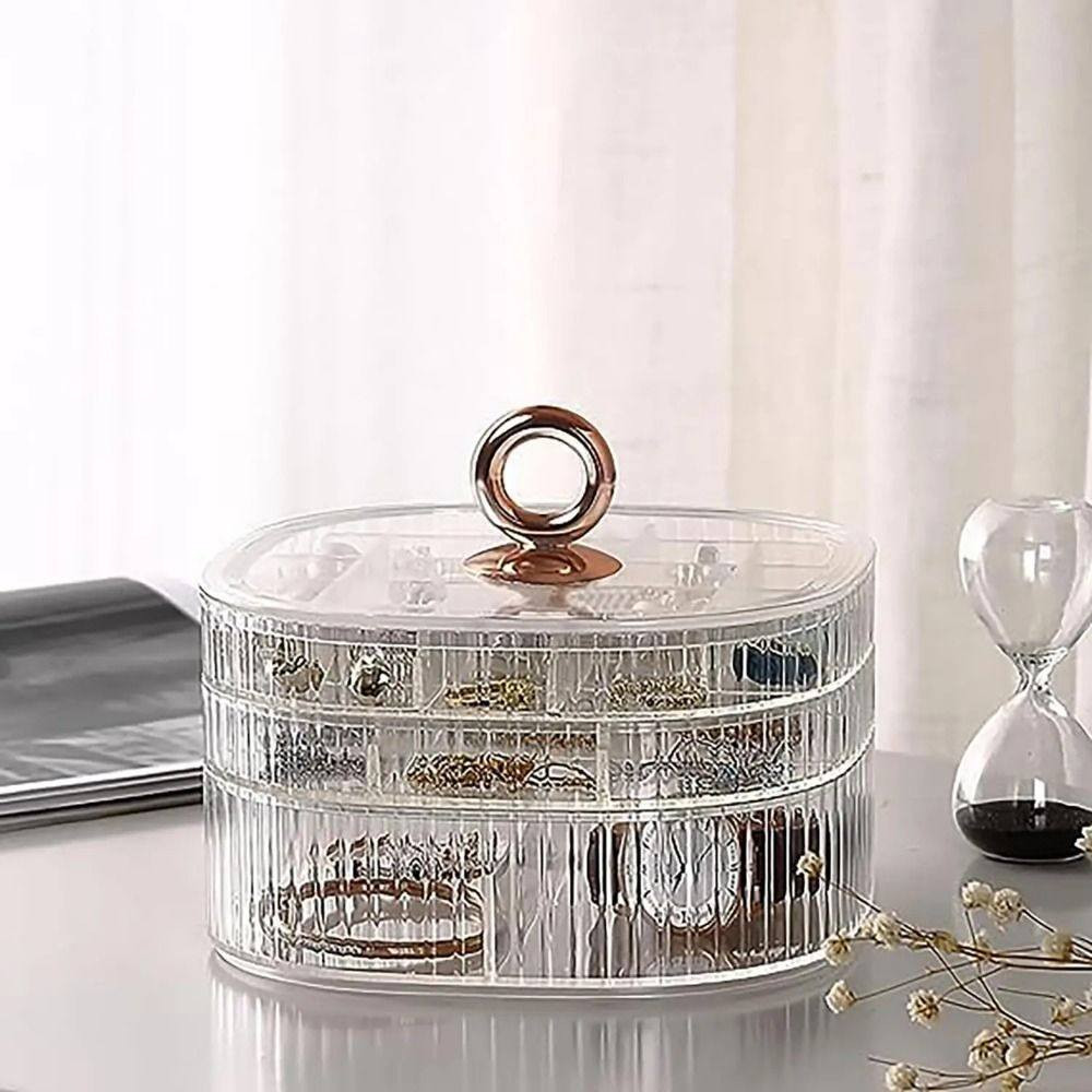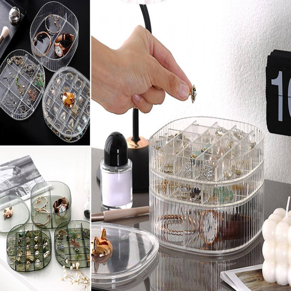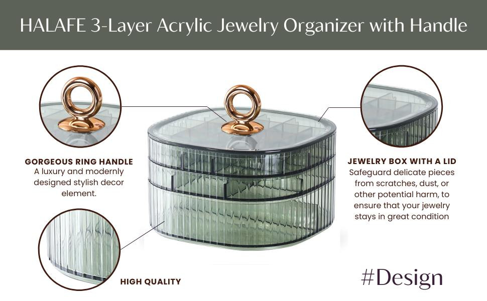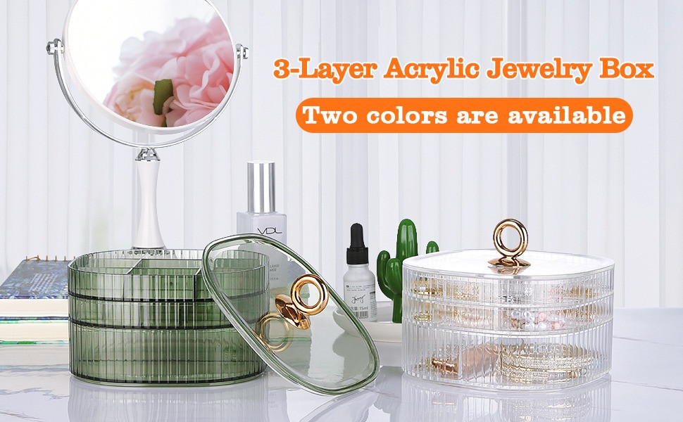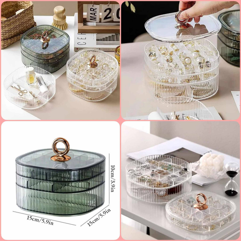 3-Layer Acrylic Jewelry Organizer with HandlePrice: 1050 TakaMaterial: PP/PSCraft: Electroplated handleSize: 5.91in*5.91in*4.06inColor: Green/Transparent