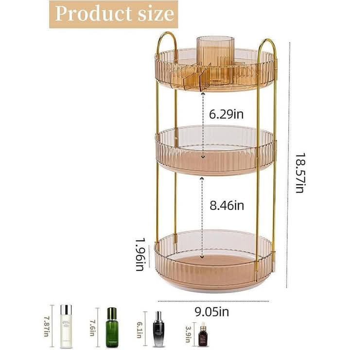 3 Layers Light Luxury Makeup OrganizerPrice: 2250 TakaMaterial: Pet + Metal360° movementSuperior Material & Simple InstallationMultipurpose UseDimensions: 47 by 23 cmFor order please click "Order Now" button