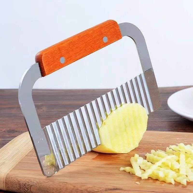 Crinkle Cutter, Potato Cutter, Crinkle Cutting Tool French Fry Slicer Stainless Steel Blade Wooden Handle Vegetable Salad Cutting KnifePrice: 350 Taka PieceColour : Silver + Wood colorMaterial: Stainless Steel+WoodSize: 19x12cm