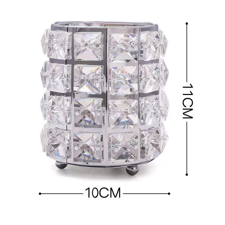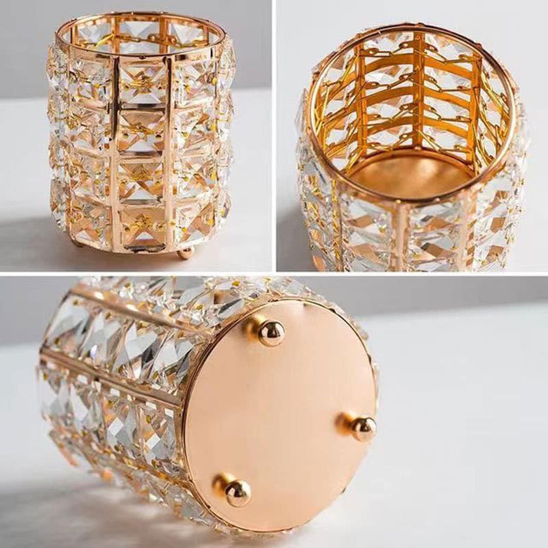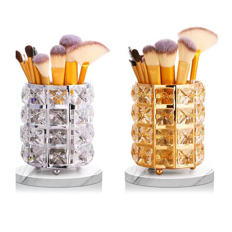 Crystal Brush HolderMaterial: Metal, Artificial CrystalShape: RoundColor: Gold & SilverBrush Holder Size: 10*12cm (Diameter*H)Imported from China See less