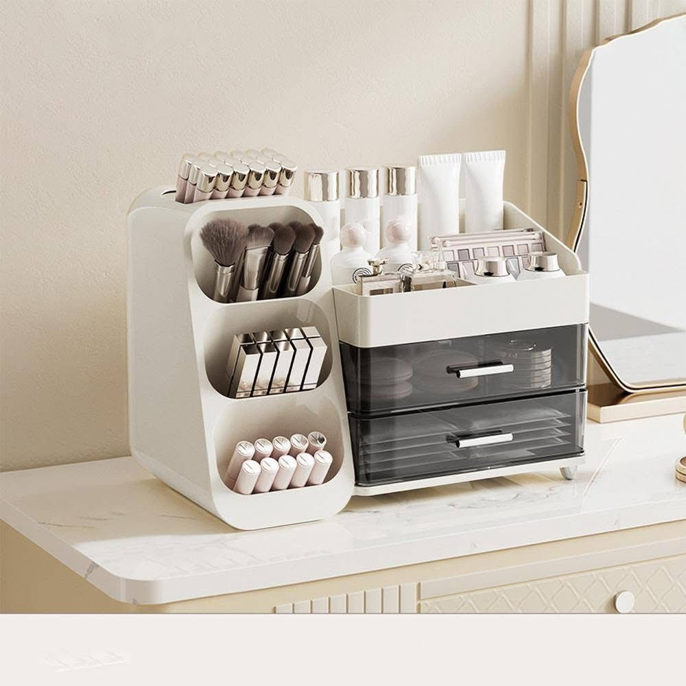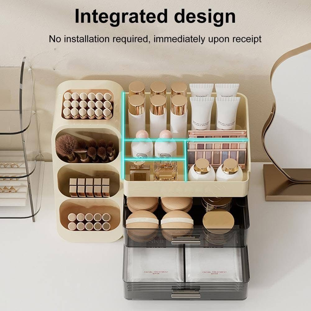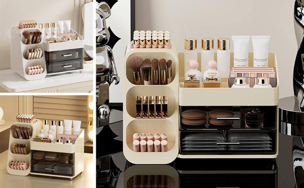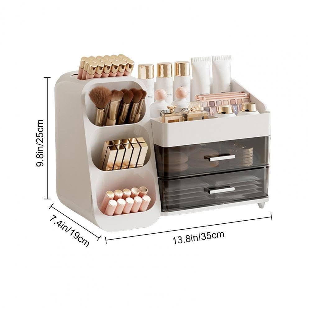 Makeup Organizer with Drawers for Vanity, Spacious Cosmetic Display CasePrice: 2650 TakaProduct Dimensions: 7.6"D x 14.3"W x 10.2"HMaterial ABS+PET