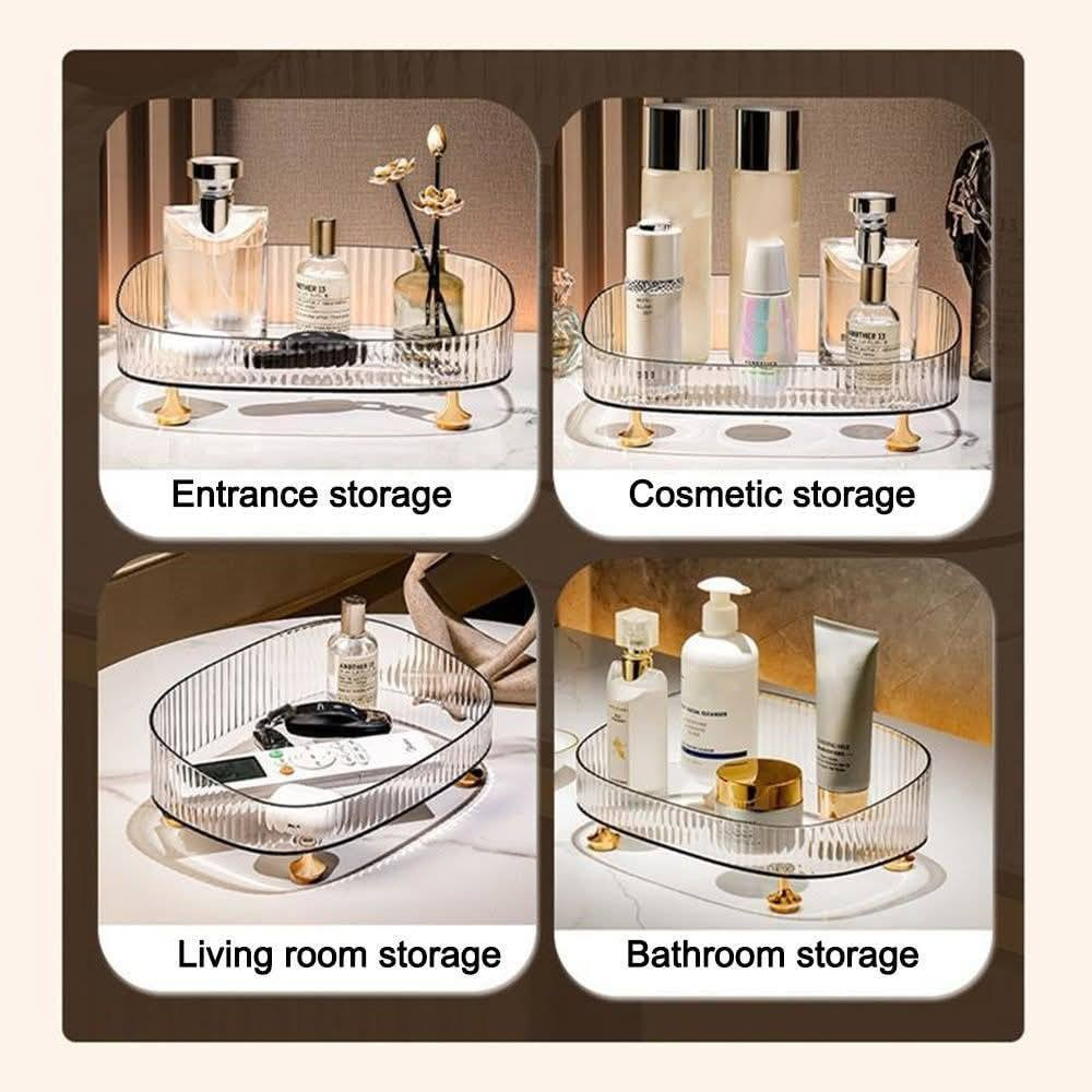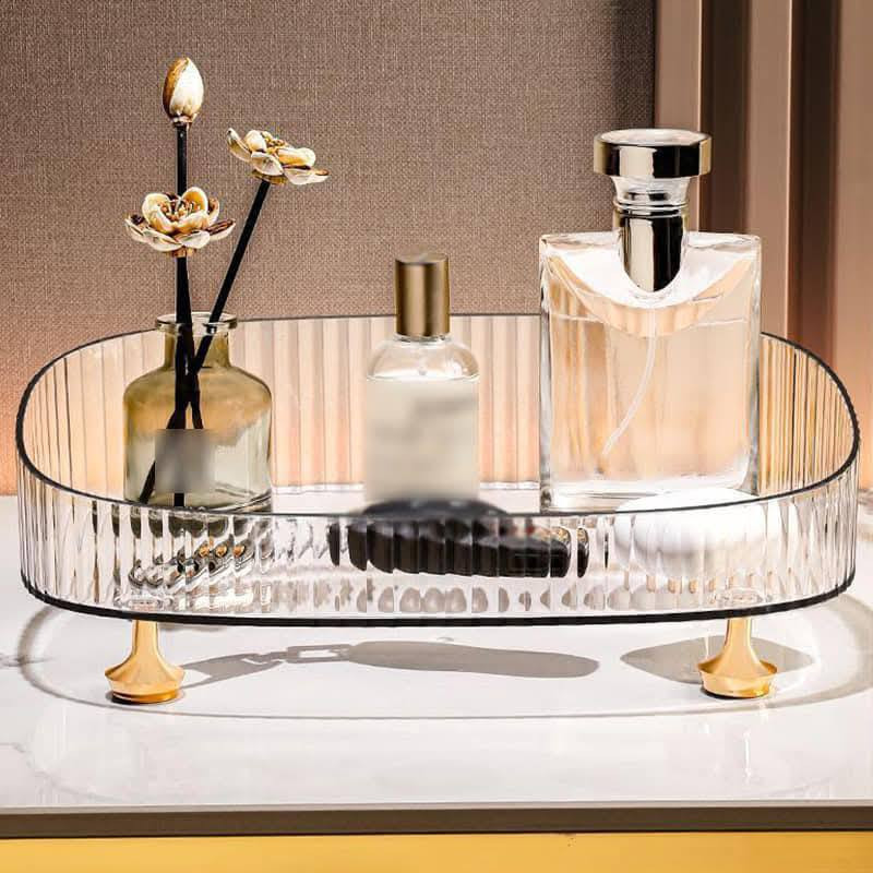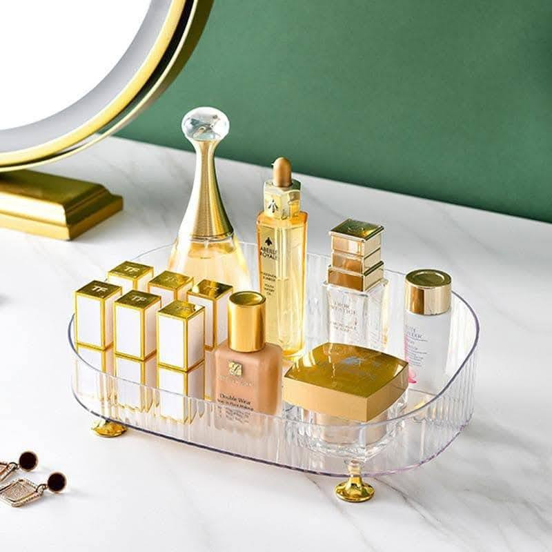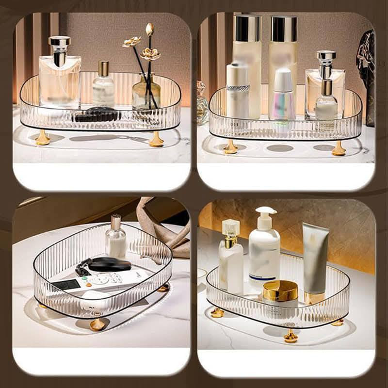 • Material: The makeup organizer is made of high-grade PET material, thickened design, smooth edges, anti-slip design with 4 gold stands makes the makeup tray durable, place more stable.