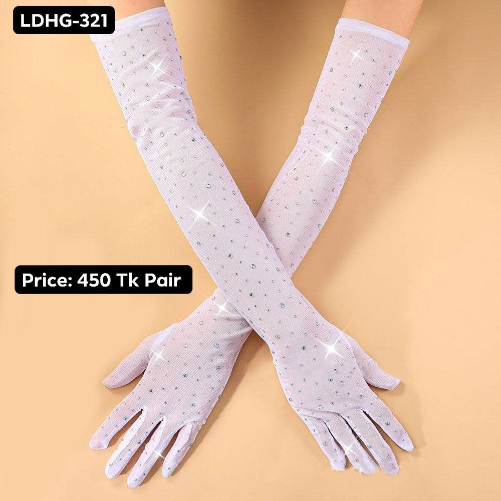 Rhinestone elbow-length gloves