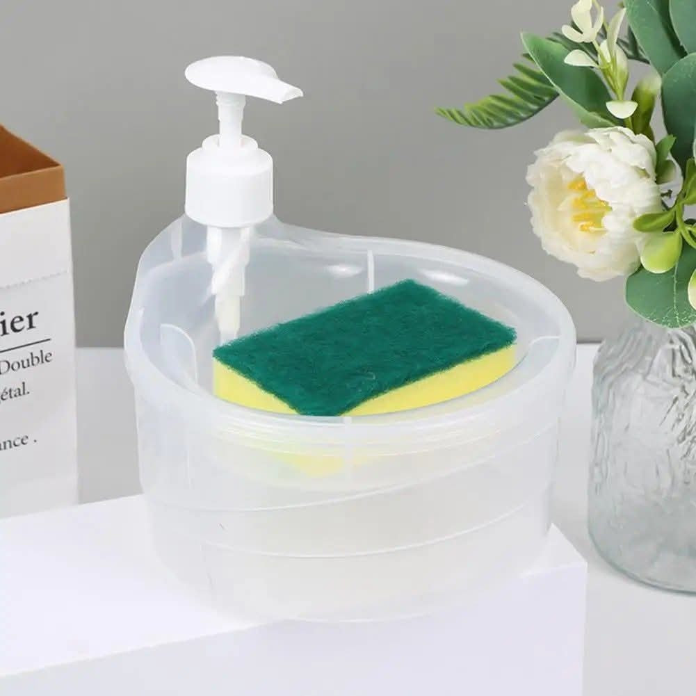 একই সাথে স্পঞ্জ হোল্ডার এবং সোপ ডিসপেনসার – একে চাপ দিন, স্পঞ্জে সাবান, আর ধোয়া শুরু করুন
