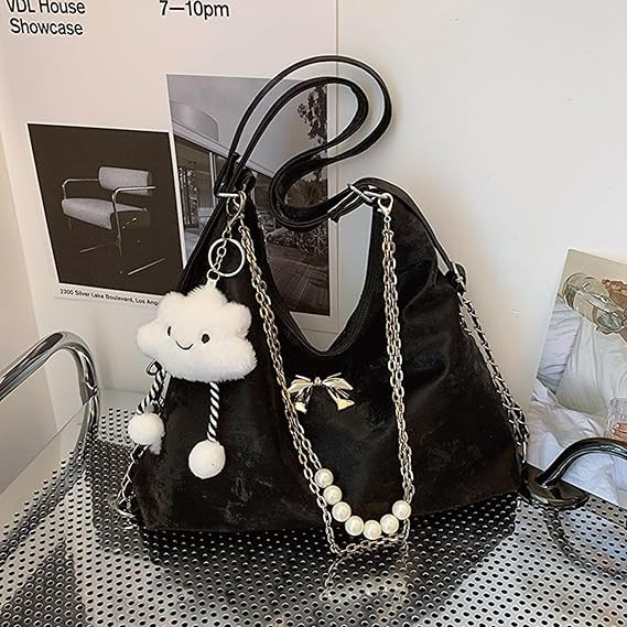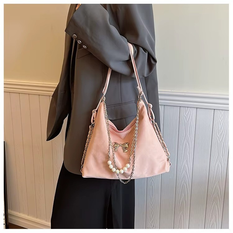 Soft Leather Korean Style Pearl Chain Shoulder BagOffer Price: 950 TakaMaterial: PU LatherSize: Height 24cm/9.4in, Length 32cm/12.6in Width 10cm/4 inch